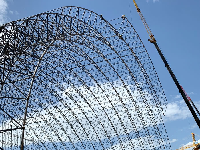 (2)网架加工前应对现场尺寸进行复测,确认无误后方可进行加工、安装;网架制作、运输、安装应遵守《空间网格结构技术规程》JGJ7-2010、《钢网架云南螺栓球节点》JG/T 10-2009、《钢网架云南螺栓球节点用高强度螺栓》 GB/T 16939-2016、《云南钢结构云南工程云南施工规范》 GB50755-2012、《云南钢结构云南工程施工质量验收标准》 GB50205-2020。